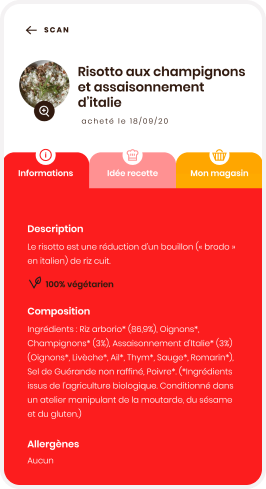 Scanne son contenant pour retrouver sur son mobile toute l’information produit et traçabilité en direct de la marque et du magasin.